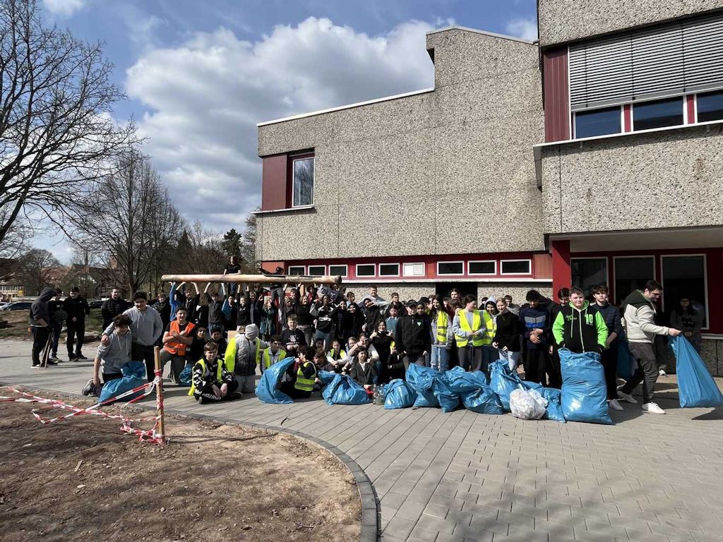 Ein zersplittertes Büroschränkchen, eine Trinkflasche aus Edelstahl, ein meterlanges Rohr - unglaublich, welchen Müll man findet, wenn man mit offenen Augen die Straßen und Wege entlangstreift, um genau diesen aus der Welt zu schaffen. Die Schülerinnen und Schüler der Jahrgangsstufen 5, 6, 7 und 8 der Karl-Trunzer-Gemeinschaftsschule Buchen beteiligten sich am Mittwochnachmittag an der „Frühjahrsputz“-Aktion der Stadt und durchkämmten - ausgerüstet mit Warnwesten, Müllgreifzangen, Handschuhen und blauen Säcken - ihre zugeteilten Bereiche. Mit jedem besonderen Fund wuchs die Motivation der Mädchen und Jungen, die sich sehr über die hohe Anzahl an weggeworfenen Zigarettenstummeln, Bonbonpapieren und Flaschen jeglicher Form und Größe wunderten. Und so kroch man irgendwann in die verlassensten Nischen, machte versteckte Ecken ausfindig, kraxelte Schrägen entlang und schlich sich durchs Gebüsch, um auch wirklich den verstecktesten Unrat in seinen Müllsack verschwinden lassen zu können. Am Ende wartete in der Schule auf die engagierten Jugendlichen eine Belohnung: Von der Stadt Buchen gab`s eine Brezel und ein Getränk, was den Nachmittag außerhalb des Schulhauses zu einer rundum gelungenen Sache machte.