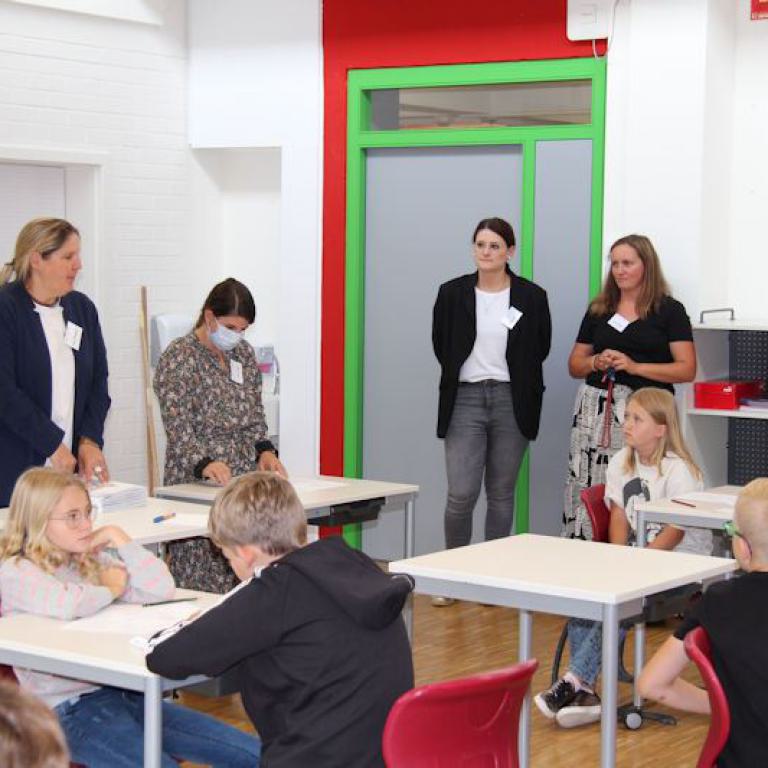 Zusammen mit ihren Lernbegleiterinnen Megan Soppa, Ines Waldherr, Hanna Schönit und Lena Baier sowie Schulsozialarbeiterin Jasmin Hauk starteten die Kinder gleich gemeinsam in die - ebenfalls bereits traditionelle - Kennlernwoche, um dann gut gewappnet in den Ganztags-Alltag an der Karl-Trunzer-Gemeinschaftsschule zu starten.