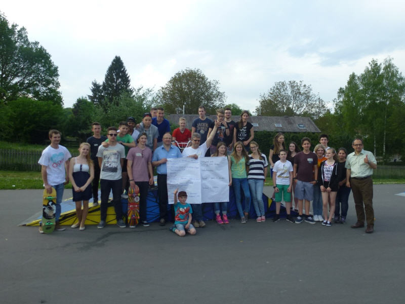 Die Planungswerkstatt fand am späten Nachmittag auf der bereits vorhandenen Skateranlage statt, die Moderation hatte das Landschaftsarchitektenbüro Hink inne.