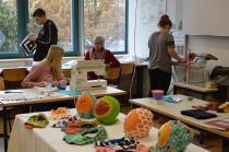Blau, gelb, rot, grün; getupft, gestreift, mit Blumen- oder Sternenmuster - die Neuntklässler der Karl-Trunzer-Schule haben sich zu Beginn der Adventszeit an einem ganz besonderen Flüchtlings-Projekt beteiligt. Im Rahmen ihres WAG-Unterrichts bei Frau Öppling nähten sie verschiedenste Schlupfmützen, die anschließend in einem großen Paket samt beigelegtem Brief nach Berlin geschickt wurden, wo sie Flüchtlingskindern kostenlos zur Verfügung gestellt wurden.